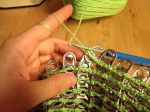 BORSA “Drink it” con linguette delle lattine lavorata all’uncinetto