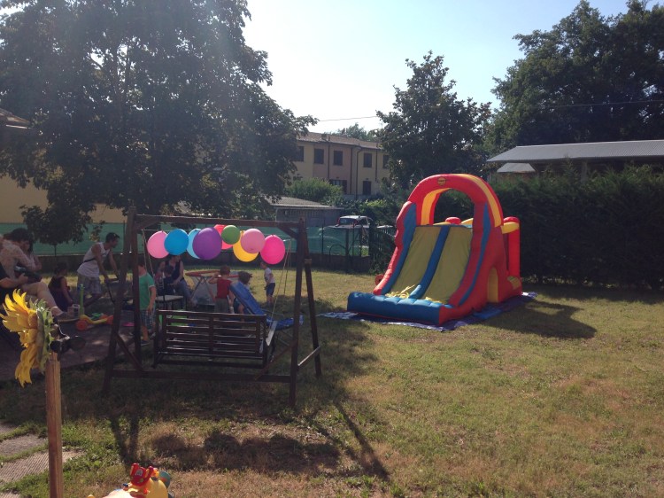e lo abbiamo montato in 5 minuti. Per proteggerlo meglio abbiamo messo due teli sotto. I bambini sono impazziti e la festa è stata un successone!