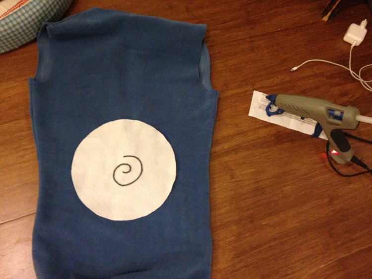 Ho incollato un cerchio bianco per fare la panciotta del gatto e poi ho preparato e cucito la maniche
